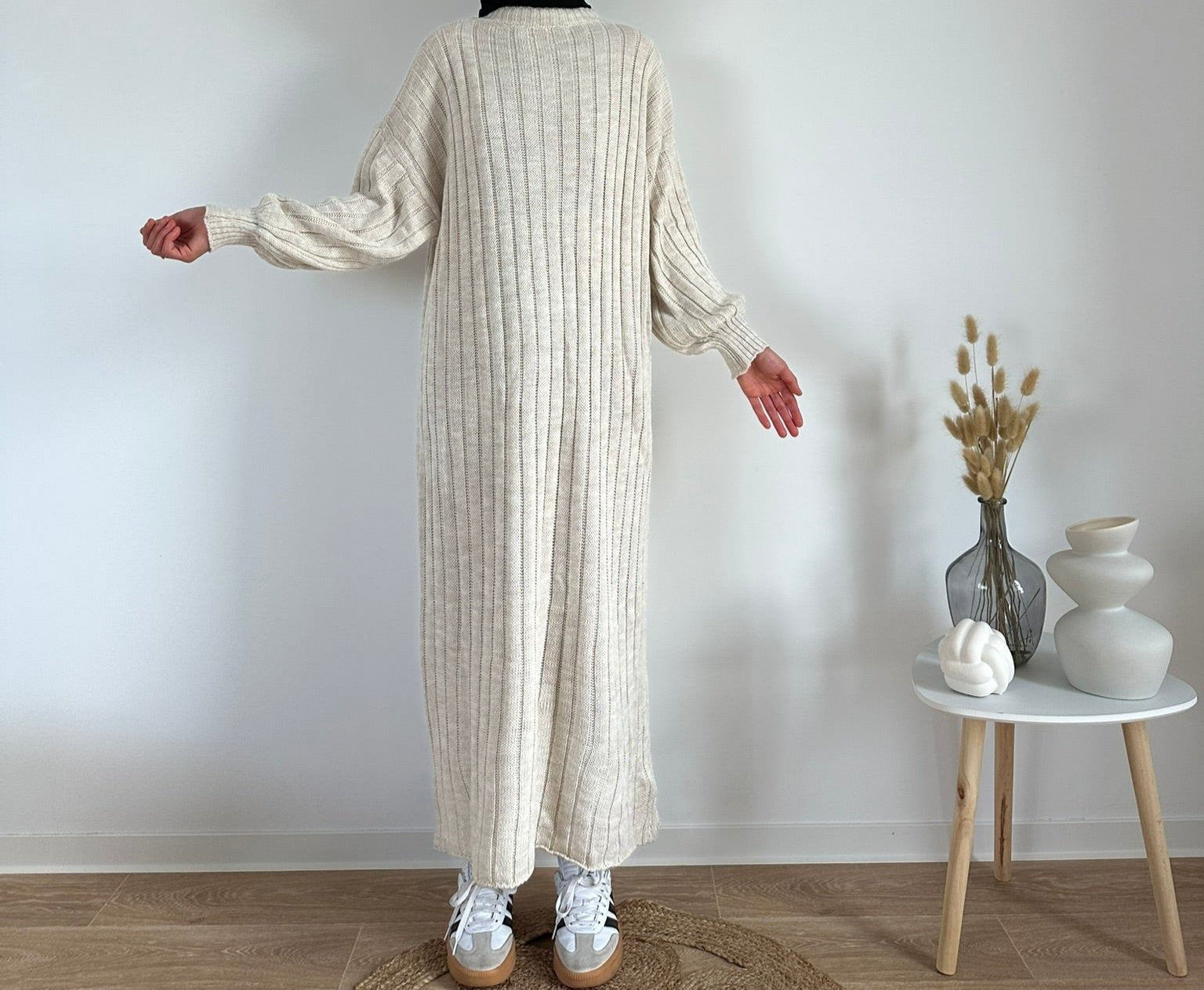 Long knit dress White